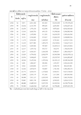 ตารางที่ 3.1 สถิติสถานการณ์อุทกภัยของประเทศไทย ( ปี 2532 – 2554)