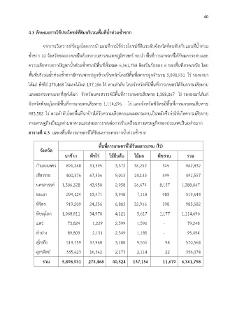 ตารางที่ 4.3 เแสพนพ้ นท่่ก ำรป ณิรท่่กไพ้รกบผล รทท่บจำ น ้ำท่วมซซ ้ำซำ