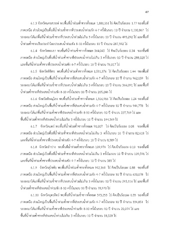 รองลงมาได้แก่พื้นที่น้้าท่วมซ้้าซากที่ประสบน้้าท่วมไม่เกิน 3 ครั้งในรอบ 10 ปี จ้านวน 364,091 ไร่ และพื้นที่