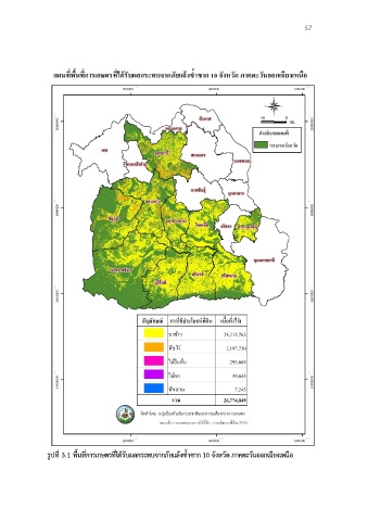 57 จัดท้าดย กลุมปງองกันภัยธรรมชาติละความสีไยงทางการกษตร กองนยบายละผนการ฿ชຌทีไดิน กรมพัฒนาทีไดิน 2556 รูปทีไ 3.1 พืๅนทีไการกษตรทีไเดຌรับผลกระทบจากภัยลຌงซๅ้าซาก 10 จังหวัด ภาคตะวันออกฉียงหนือ