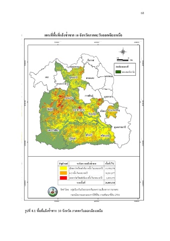 68 จัดท้าดย กลุมปງองกันภัยธรรมชาติละความสีไยงทางการกษตร กองนยบายละผนการ฿ชຌทีไดิน กรมพัฒนาทีไดิน 2556 รูปทีไ 4.1 พืๅนทีไลຌงซๅ้าซาก 10 จังหวัด ภาคตะวันออกฉียงหนือ