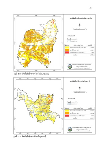 73 รูปทีไ 4.10 พืๅนทีไลຌงซๅ้าซากจังหวัดอ้านาจจริญ รูปทีไ 4.11 พืๅนทีไลຌงซๅ้าซากจังหวัดอุดรธานี