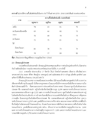 ตารางที่ 2.3 สถิติความชื้นสัมพัทธเฉลี่ยในคาบ 30 ป ตั้งแต พ.ศ.2531- 2560 (เปอรเซ็นต) ของประเทศไทย