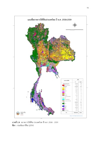16 ภาพที่ 2.4 สภาพการใชที่ดิน ประเทศไทย ป พ.ศ. 2558 - 2559 ที่มา : กรมพัฒนาที่ดิน (2559)
