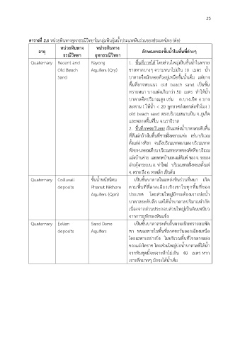 ตารางที่ 2.6 หนวยหินทางอุทกธรณีวิทยาในกลุมหินอุมน้ําประเภทหินรวนของประเทศไทย (ตอ)