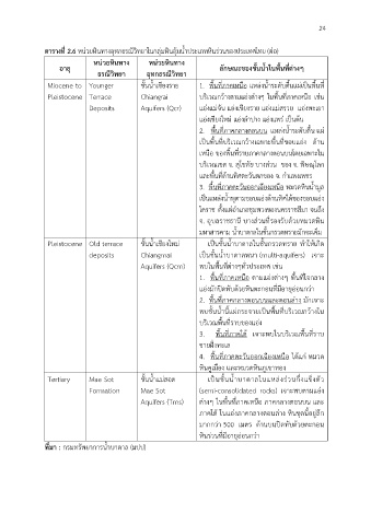 ตารางที่ 2.6 หนวยหินทางอุทกธรณีวิทยาในกลุมหินอุมน้ําประเภทหินรวนของประเทศไทย (ตอ)