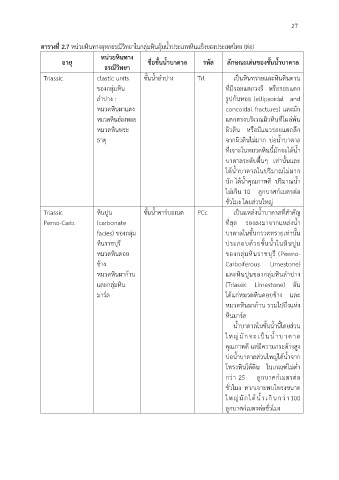 ตารางที่ 2.7 หนวยหินทางอุทกธรณีวิทยาในกลุมหินอุมน้ําประเภทหินแข็งของประเทศไทย (ตอ)
