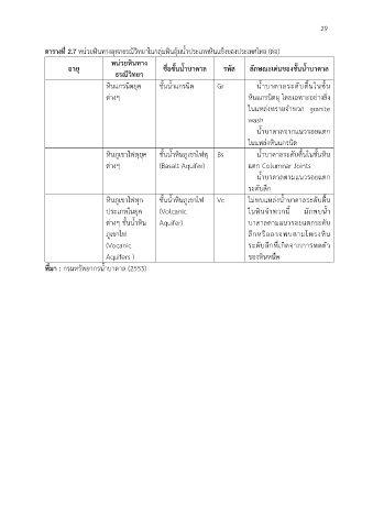 ตารางที่ 2.7 หนวยหินทางอุทกธรณีวิทยาในกลุมหินอุมน้ําประเภทหินแข็งของประเทศไทย (ตอ)