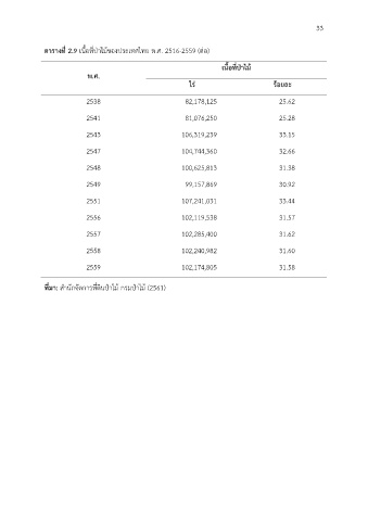 ตารางที่ 2.9 เนื้อที่ปาไมของประเทศไทย พ.ศ. 2516-2559 (ตอ)