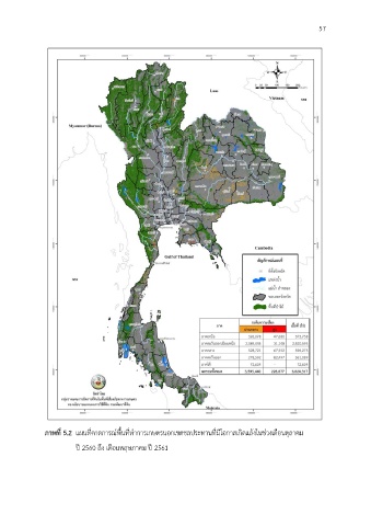 57 ภาพที่ 5.2 แผนที่คาดการณ์พื้นที่ทําการเกษตรนอกเขตชลประทานที่มีโอกาสเกิดแล้งในช่วงเดือนตุลาคม ปี 2560 ถึง เดือนพฤษภาคม ปี 2561