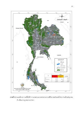 59 ภาพที่ 5.3 แผนที่คาดการณ์พื้นที่ทําการเกษตรนอกเขตชลประทานที่มีโอกาสเกิดฝนทิ้งช่วง ช่วงเดือนมิถุนายน ถึง เดือนกรกฎาคม พ.ศ.2561