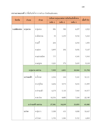 ตารางภาคผนวกที่ 12 พื้นที่แล้งซ้ำซากรายตำบล จังหวัดแม่ฮ่องสอน
