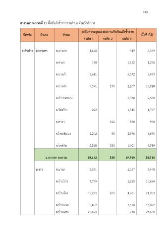 ตารางภาคผนวกที่ 13 พื้นที่แล้งซ้ำซากรายตำบล จังหวัดลำปาง