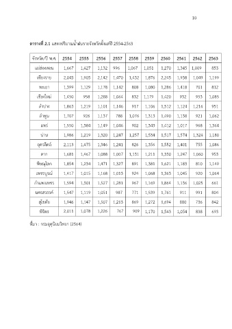 ตารางที่ 2.1 แสดงปริมาณน้ำฝนรายจังหวัดตั้งแต่ปี 2554-2563