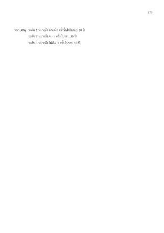 170 หมายเหตุ : ระดับ 1 หมายถึง ตั้งแต่ 6 ครั้งขึ้นไปในรอบ 10 ปี ระดับ 2 หมายถึง 4 - 5 ครั้ง ในรอบ 10 ปี ระดับ 3 หมายถึง ไม่เกิน 3 ครั้ง ในรอบ 10 ปี