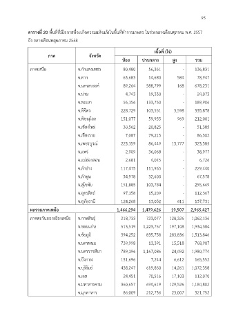 ตารางที่ 20 พื้นที่ที่มีโอกาสที่จะเกิดความแห้งแล้งในพื้นที่ท าการเกษตร ในช่วงกลางเดือนตุลาคม พ.ศ. 2557