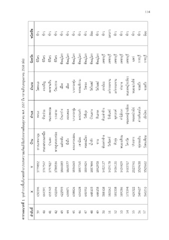 ตารางผนวกที่ 1 จุดส ำรวจพื้นที่เกษตรที่จะประสบควำมแห้งแล้งในช่วงกลำงเดือนตุลำคม พ.ศ. 2557 ถึง กลำงเดือนพฤษภำคม 2558 (ต่อ)