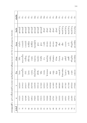 ตารางผนวกที่ 1 จุดส ำรวจพื้นที่เกษตรที่จะประสบควำมแห้งแล้งในช่วงกลำงเดือนตุลำคม พ.ศ. 2557 ถึง กลำงเดือนพฤษภำคม 2558 (ต่อ)