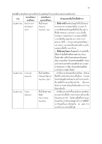 ตารางที่ 6 หน่วยหินทางอุทกธรณีวิทยาในกลุ่มหินอุ้มน้ าประเภทหินร่วนของประเทศไทย (ต่อ)