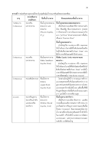 ตารางที่ 7 หน่วยหินทางอุทกธรณีวิทยาในกลุ่มหินอุ้มน้ าประเภทหินแข็งของประเทศไทย