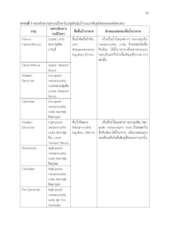 ตารางที่ 7 หน่วยหินทางอุทกธรณีวิทยาในกลุ่มหินอุ้มน้ าประเภทหินแข็งของประเทศไทย (ต่อ)