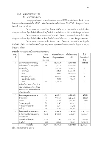 โครงการชลประทานขนาดเล็ก จ านวน 16,622 โครงการ ประกอบด้วย สถานีสูบน้ า