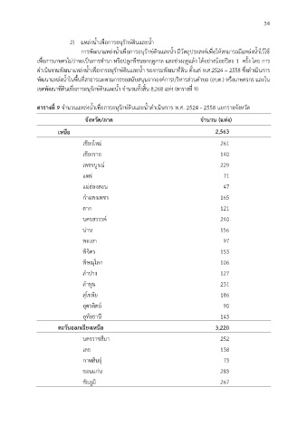 ด าเนินงานพัฒนาแหล่งน้ าเพื่อการอนุรักษ์ดินและน้ า ของกรมพัฒนาที่ดิน ตั้งแต่ พ.ศ.2524 – 2558 ซึ่งด าเนินการ
