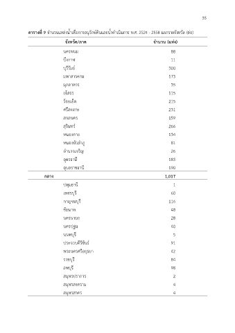 ตารางที่ 9 จ านวนแหล่งน้ าเพื่อการอนุรักษ์ดินและน้ าด าเนินการ พ.ศ. 2524 - 2558 แยกรายจังหวัด (ต่อ)