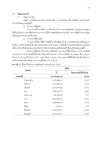 ตารางที่ 11 เนื้อที่ป่าไม้ของประเทศไทยแยกรายจังหวัด พ.ศ. 2558