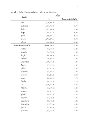 ตารางที่ 11 เนื้อที่ป่าไม้ของประเทศไทยแยกรายจังหวัด พ.ศ. 2558 (ต่อ)