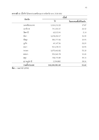 ตารางที่ 11 เนื้อที่ป่าไม้ของประเทศไทยแยกรายจังหวัด พ.ศ. 2558 (ต่อ)
