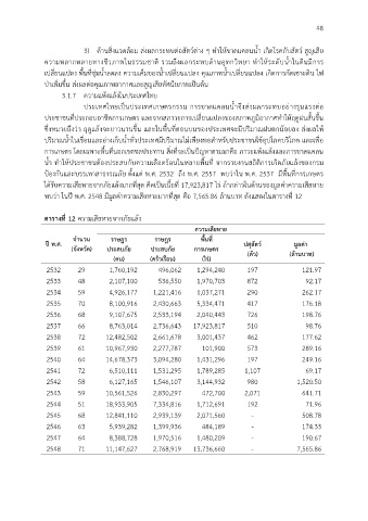 พบวา ในป พ.ศ. 2548 มีมูลคาความเสียหายมากที่สุด คือ 7,565.86 ลานบาท ดังแสดงในตารางที่ 12