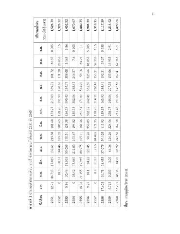 ตารางที่ 1 ปริมาณน้ำฝนรายเดือน รายปี จังหวัดสระแก้วตั้งแต่ปี 2551 ถึง 2560
