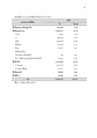 ตารางที่ 2 สภาพการใช้ที่ดินจังหวัดสระแก้ว ปี 2559