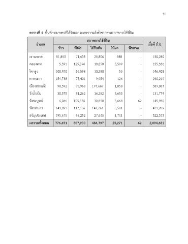 ตารางที่ 4 พื้นที่การเกษตรที่ได้รับผลกระทบจากแล้งซ้ำซากตามสภาพการใช้ที่ดิน