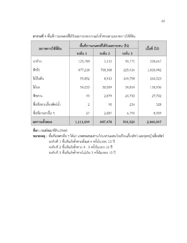 ตารางที่ 4 พื้นที่การเกษตรที่ไดรับผลกระทบจากแลงซ้ำซากตามสภาพการใชที่ดิน
