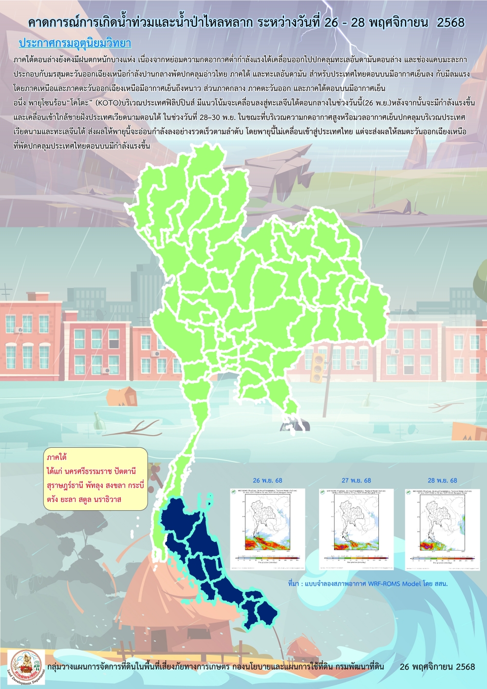 คาดการณ์น้ำท่วม ระหว่างวันที่ 26 - 28 พฤศจิกายน 2568 |