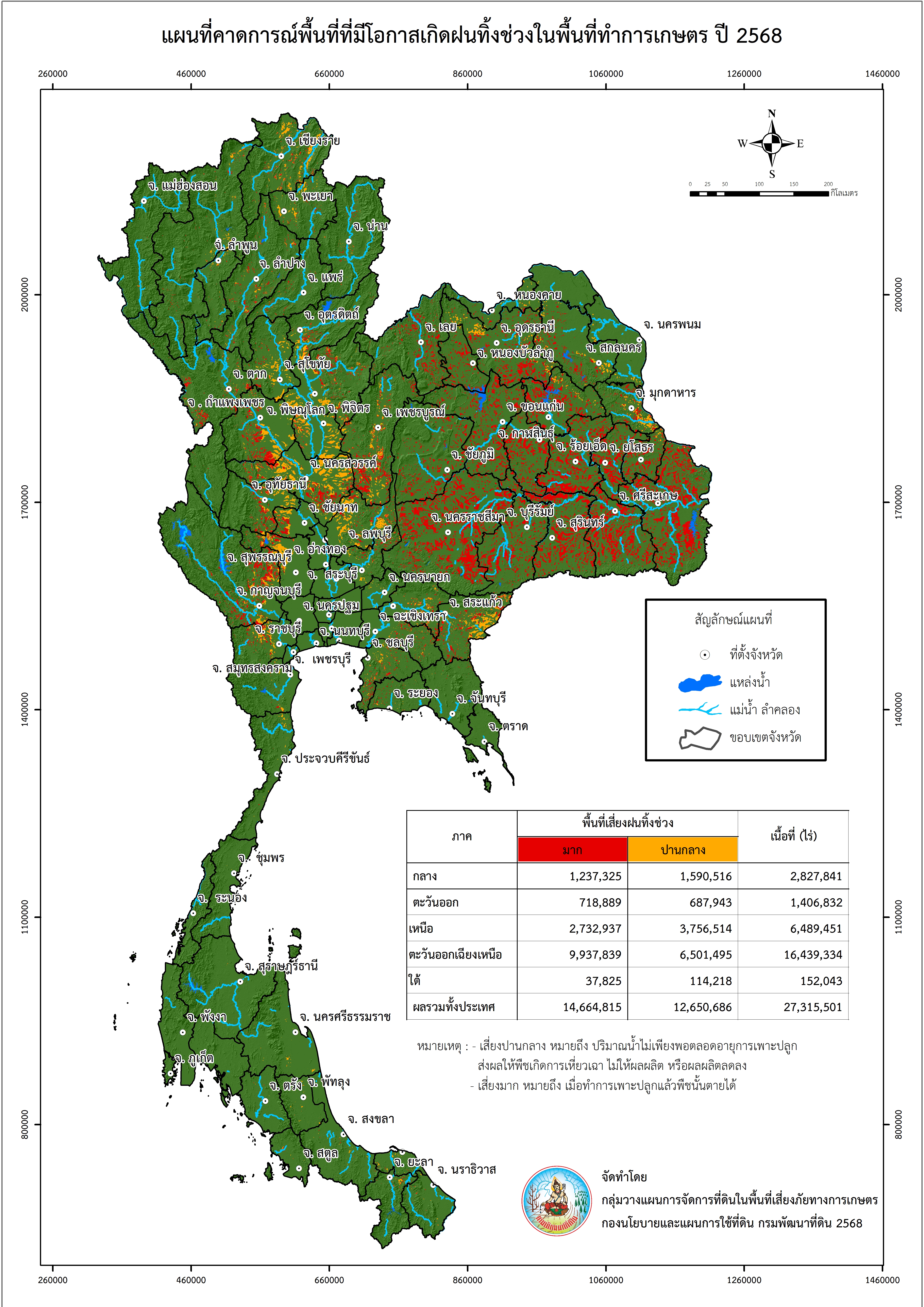 คาดการณ์พื้นที่ที่มีโอกาสเกิดฝนทิ้งช่วง